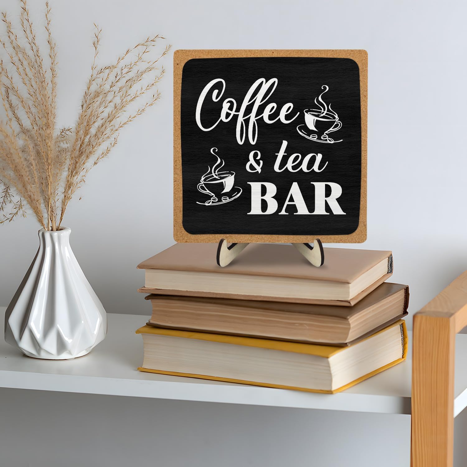 Coffee Bar Decor Sign,Rustic Wooden Plaque Coffee Sign for Java Station, Kitchen, Cafe or Tea Corner, Funny Jave Gift for Home Cafe, 5.9 x 5.9Inch (Black+Brown04)