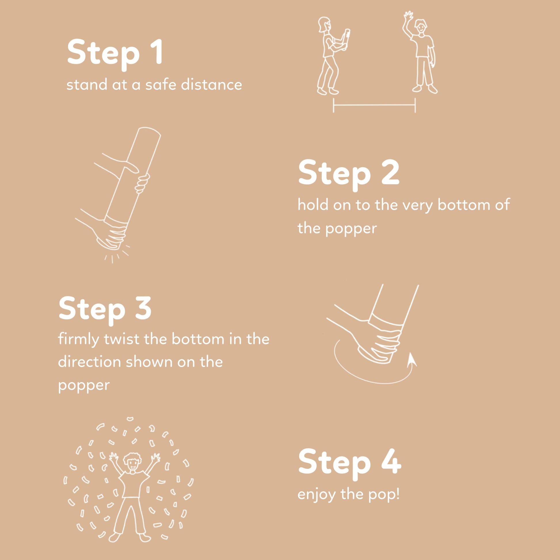 Details: AN AMAZING WAY TO CELEBRATE Celebrate your wedding with TUR Party Supplies Giant Confetti Poppers! Each beautifully decorated gift box comes with 6 Giant Confetti Poppers (12 inch) to make your special day truly unforgettable! No hassle, no prep, just one simple twist and enjoy the blast. A perfect toy alternative to sparklers or fireworks that can be used by everyone. The unique design of the poppers will also easily complement any wedding decor! The 6 pack features poppers for the whole party to have fun! Enjoy your event with no worries because TUR Party Supplies ensures that all of our products are completely safe for families to use, and easy to clean up. At TUR Party Supplies we pride ourselves in providing excellent customer service and catering to the needs of our customers. Above all our goal is that our customers are satisfied and have an absolute blast! Feel free to reach out to us at any times about any questions, comments, or concerns. We wish you congratulations on your special day! DIRECTIONS 1. Stand at safe distance 2. Hold bottom of popper firmly 3. Twist the bottom firmly in direction of arrow 4. Enjoy the confetti!