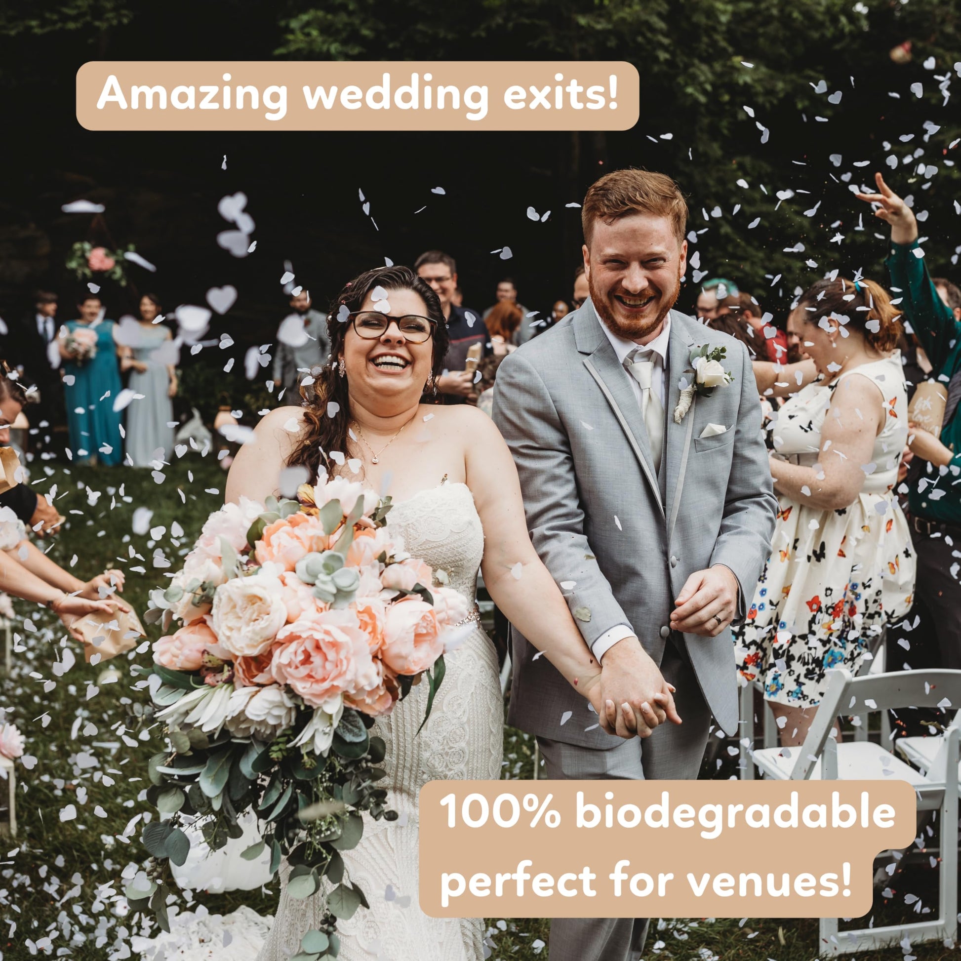 - BIODEGRADABLE - These confetti cannons are biodegradable which means... No mess no stress! Plan a delightful outdoor wedding with these poppers without the hassle of worrying about cleaning up!