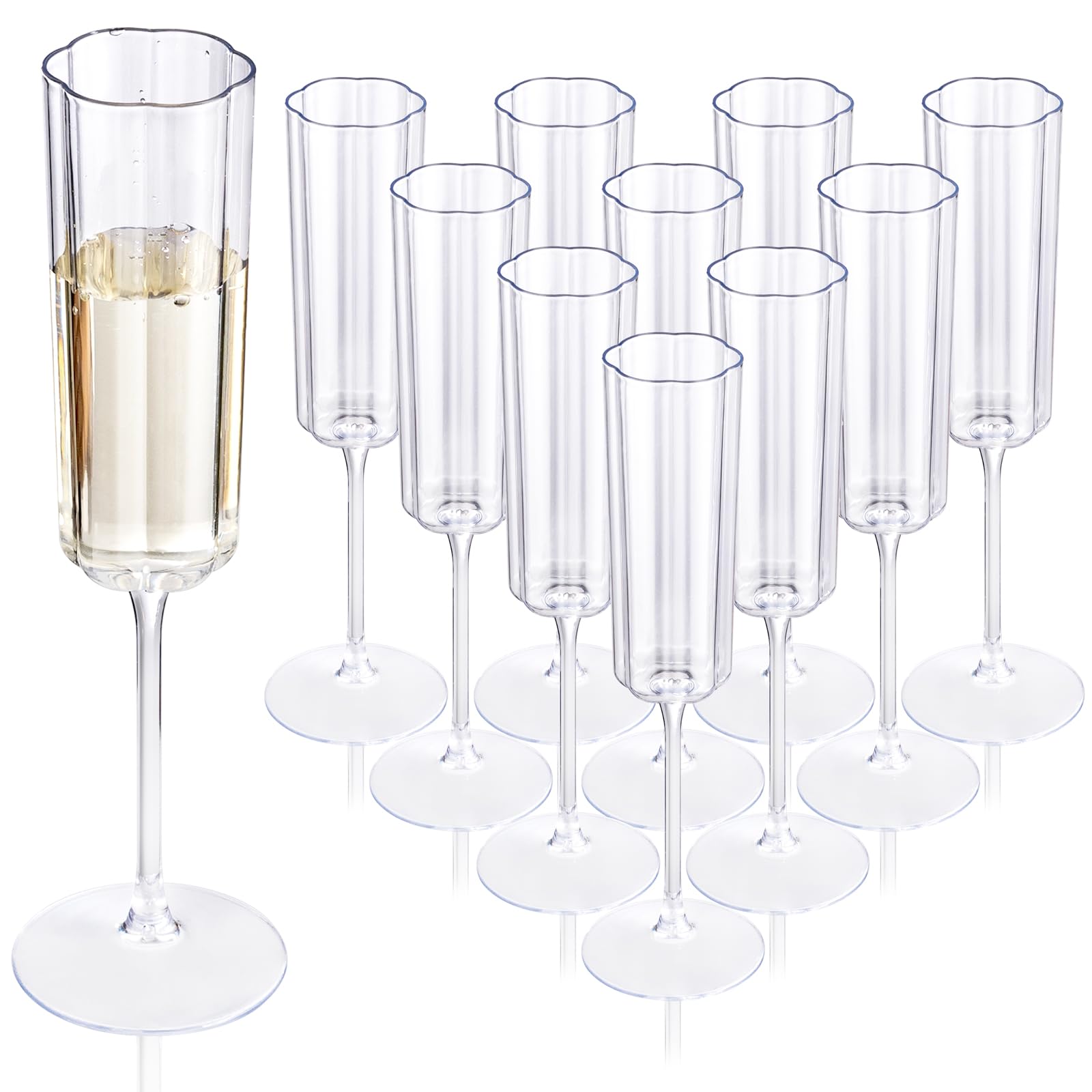 - Elegant Design for Memorable Toasts - Elevate celebrations with these clear champagne flutes plastic featuring delicate flower wavy patterns. The vintage-inspired heavy duty vintage disposable flutes add romantic charm to weddings, anniversaries, or holiday parties, blending aesthetics with functionality
