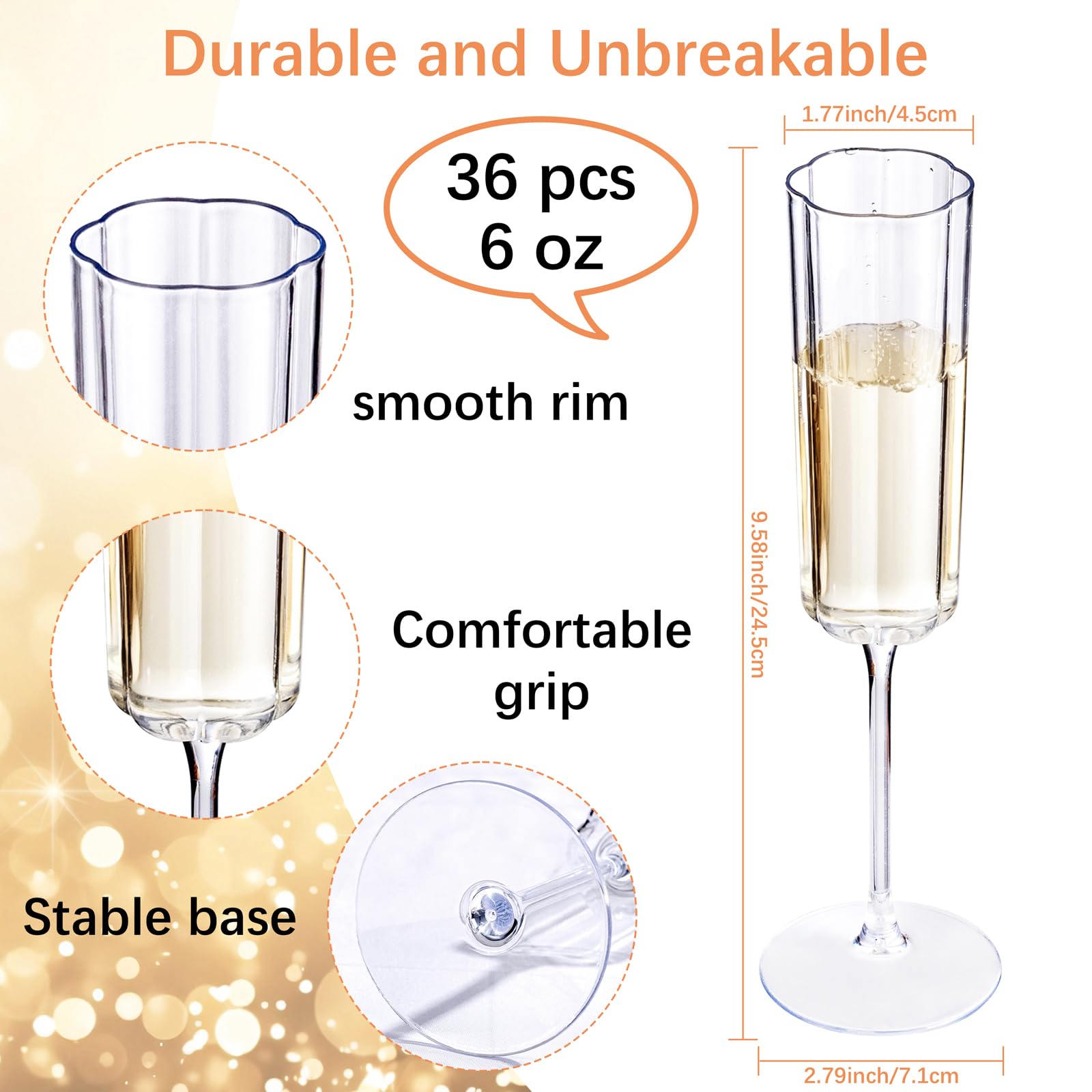 - Sturdy & Shatterproof Construction - Crafted from champagne flutes plastic materials, these 6oz glasses resist cracks and tipping. Their heavy duty build ensures they hold bubbly drinks securely, ideal for lively toasts and outdoor events
